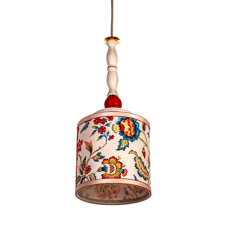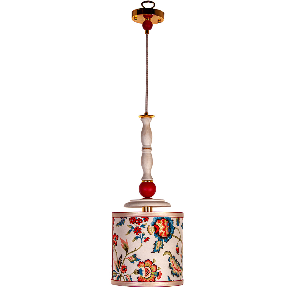 Люстра MANNE CL.7832-1RED — это диалог времен, где изысканность традиционного русского искусства встречается с современным интерьером. Художественная роспись в духе гжель, выполненная на белоснежном текстиле, расцветает ярким букетом в сине-красно-зеленой гамме, напоминая о народных промыслах.