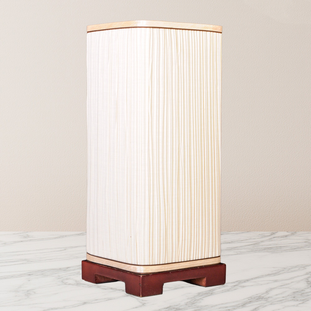 Её сердце — утонченный абажур из светлых тонов, пронизанный ритмом вертикальных линий. Он отбрасывает мягкий, струящийся свет, наполняя пространство ощущением чистоты и простора.