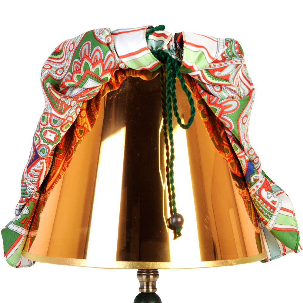 Истинное волшебство начинается при включении. Многослойная конструкция абажура — это гимн функциональности и эстетики. Внутренний, технологичный, с серебристо-золотым покрытием, отвечает за безупречное качество света: он мягко рассеивает его, бережно заботится о вашем зрении и комфортно освещает до 3 м² пространства. А сверху — пышное текстильное «платье» с ярким орнаментом и нежными оборками. Это ваш инструмент для творчества: снимите его для сдержанного минимализма или оставьте для создания праздничной атмосферы.