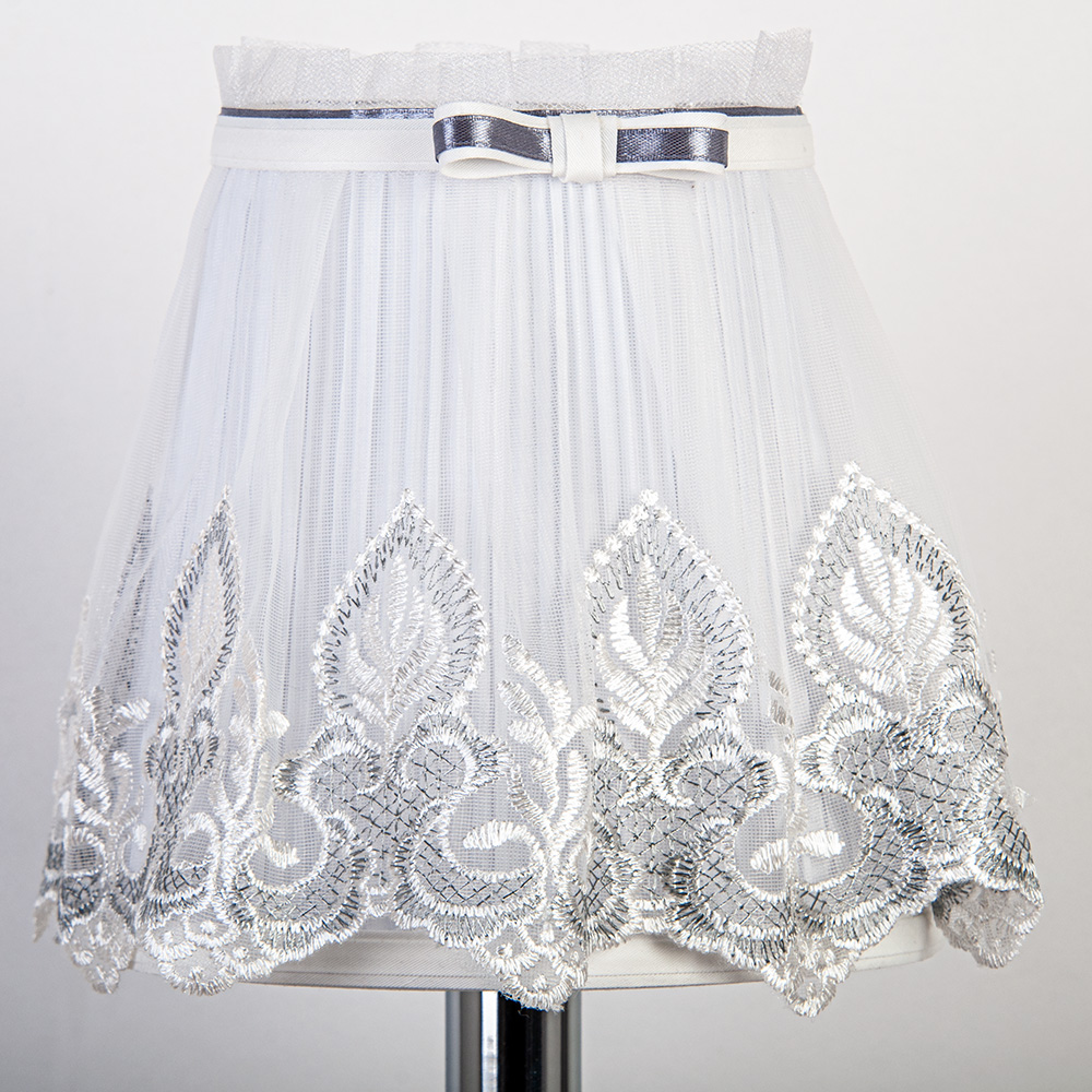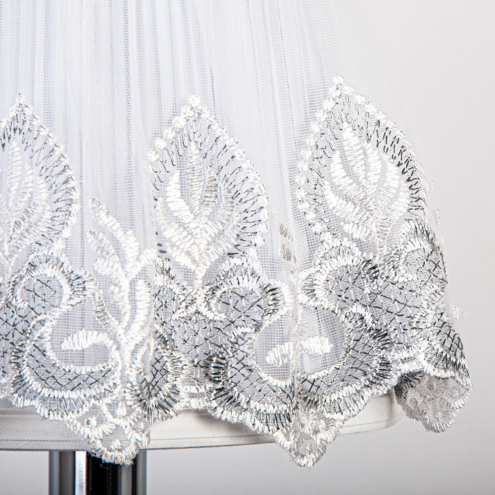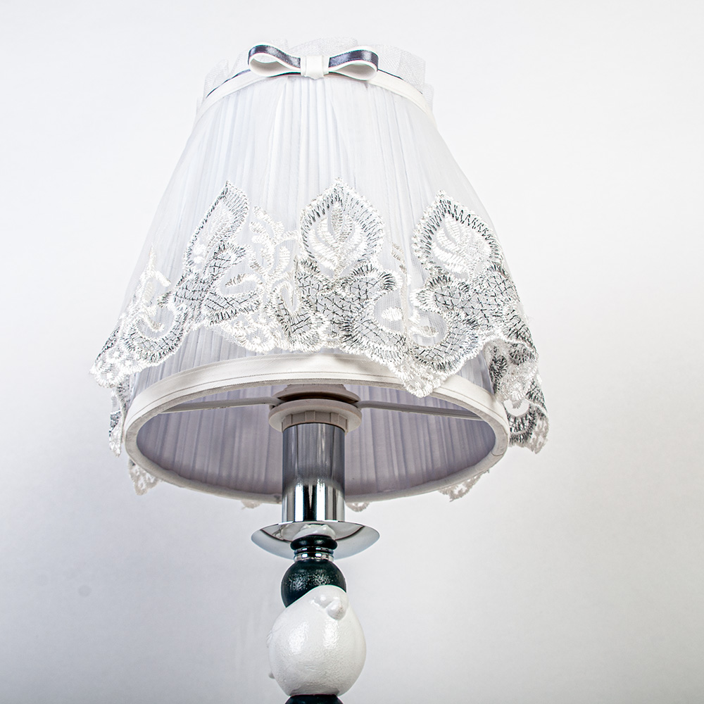 А секрет её магии — в волшебном тандеме абажуров. Практичный внутренний плафон формирует чистый, мягкий свет, а его внешнее обрамление из лёгкого кружева с серебристым шитьём создаёт в комнате атмосферу таинственного, почти сказочного мерцания.