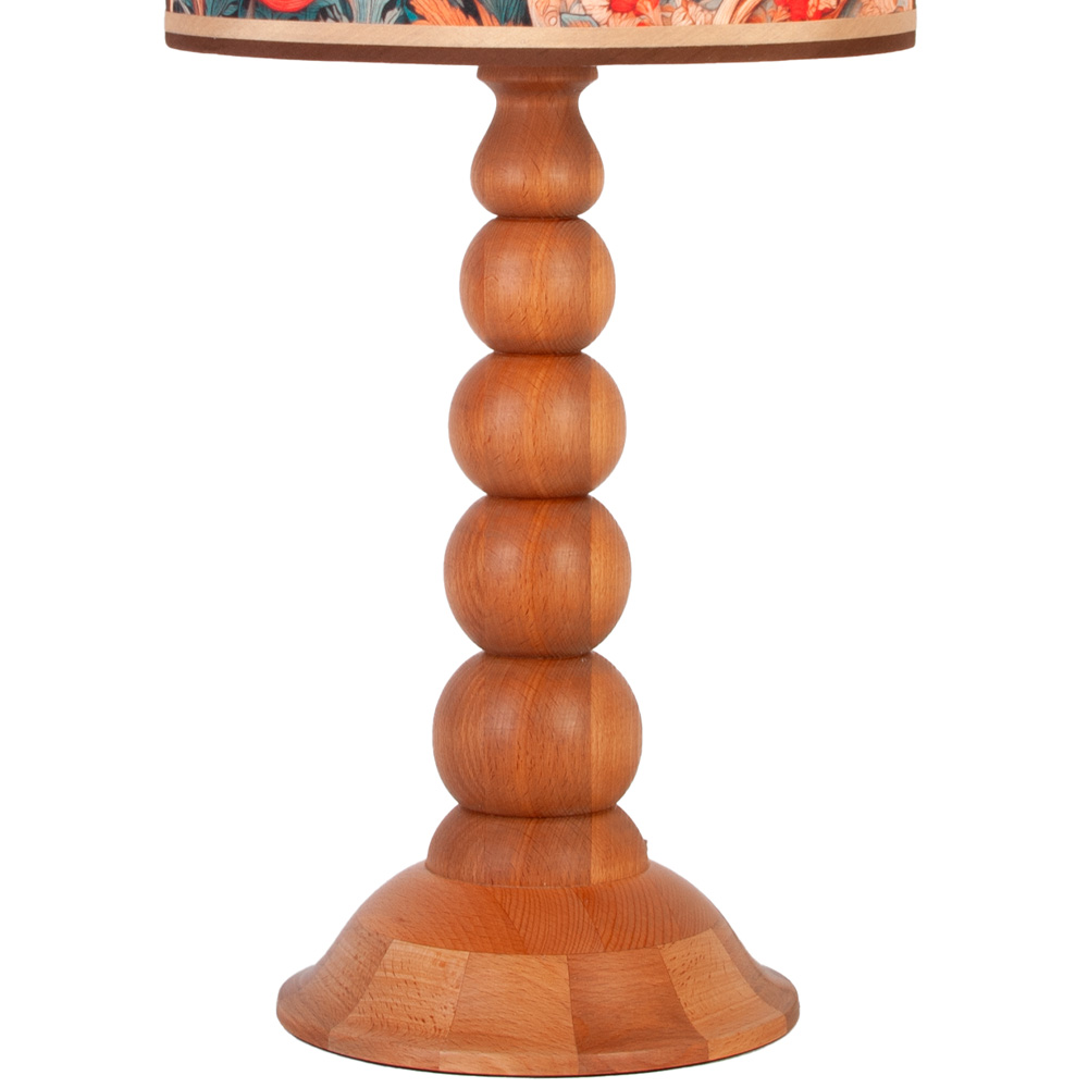 Представьте себе светильник, который рождается не на конвейере, а в тиши мастерской, где стружка завивается под резцом — это диалог художника с будущим владельцем. Тяжелое, устойчивое основание и стойка в виде благородной колонны, собранной из деревянных сегментов, — это дань традициям столярного искусства.