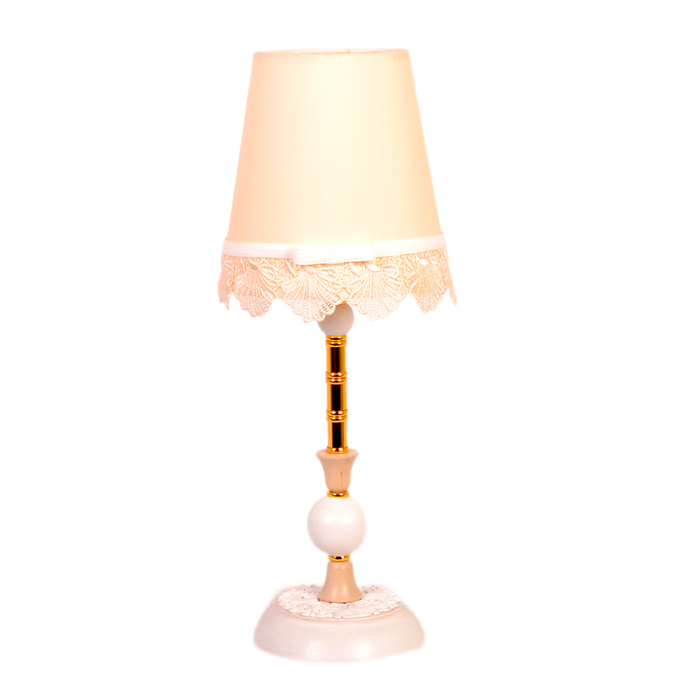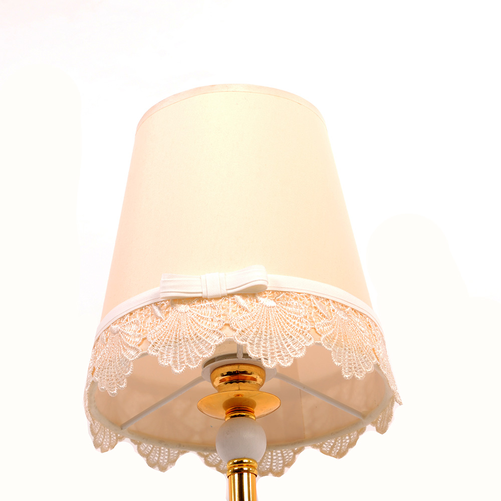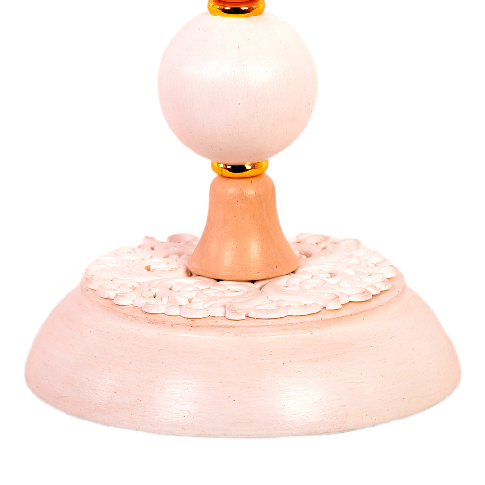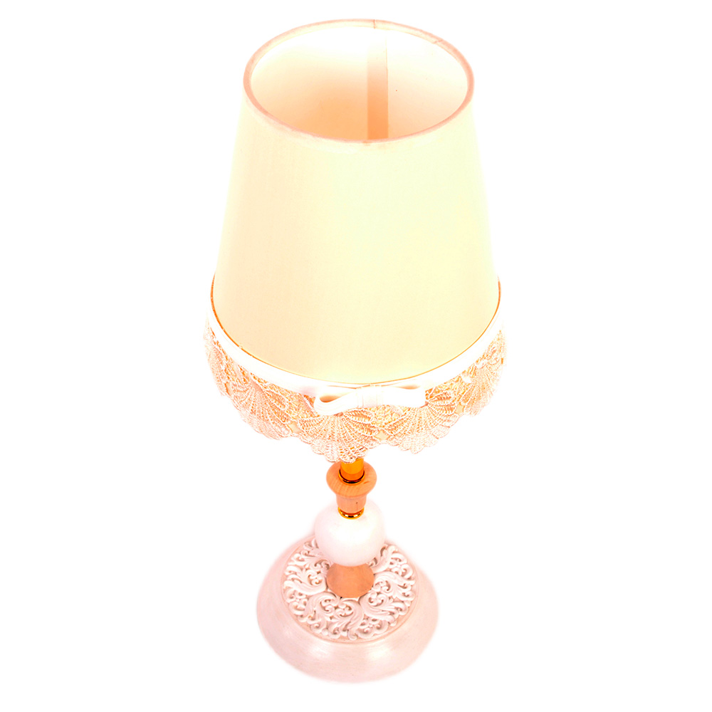 Абажур лампы выполнен из текстиля с элементами кружева, который создаёт атмосферу уюта и тепла. Кружевные элементы добавляют лампе воздушности и легкости, контрастируя с тяжестью дерева.