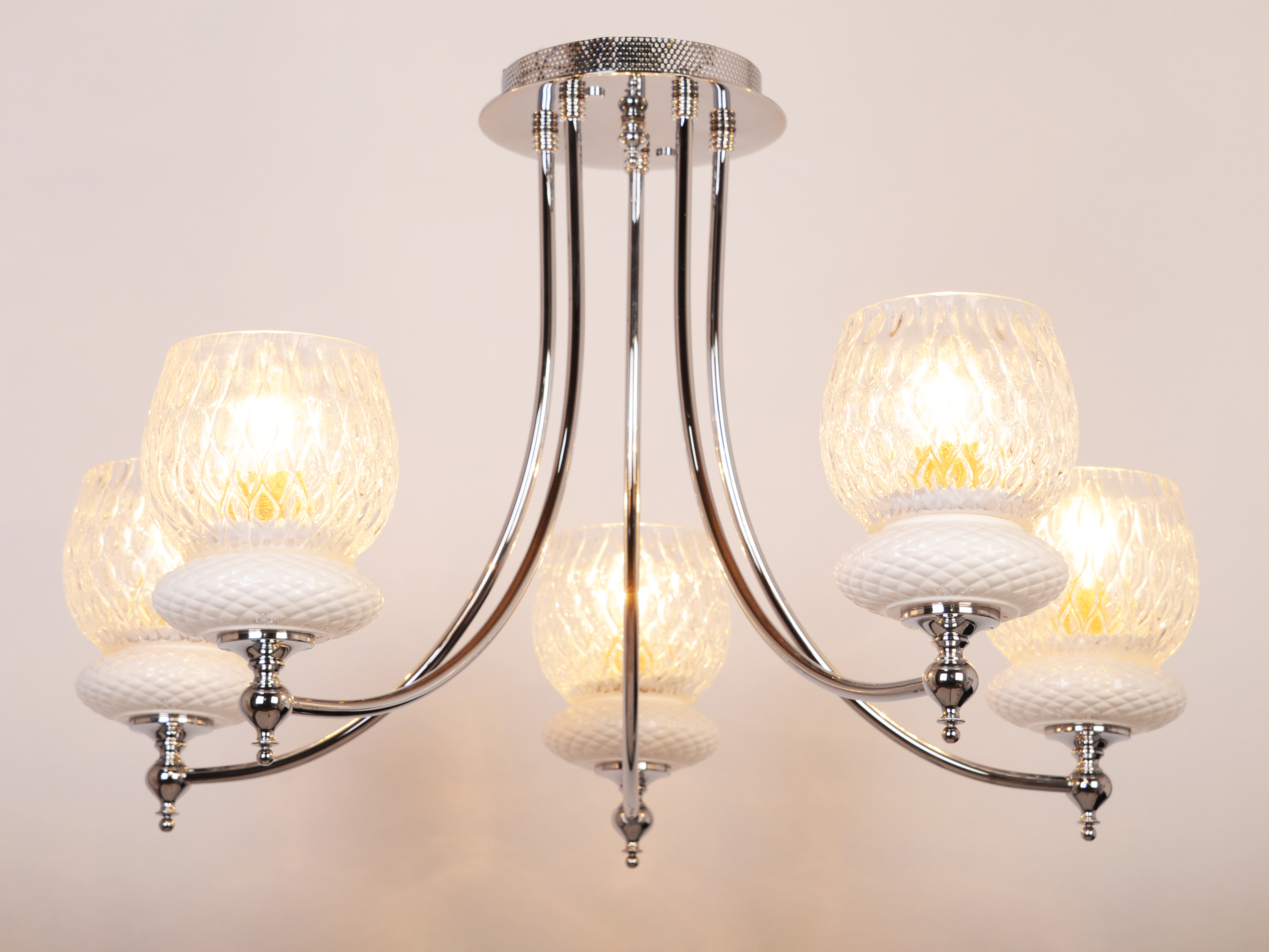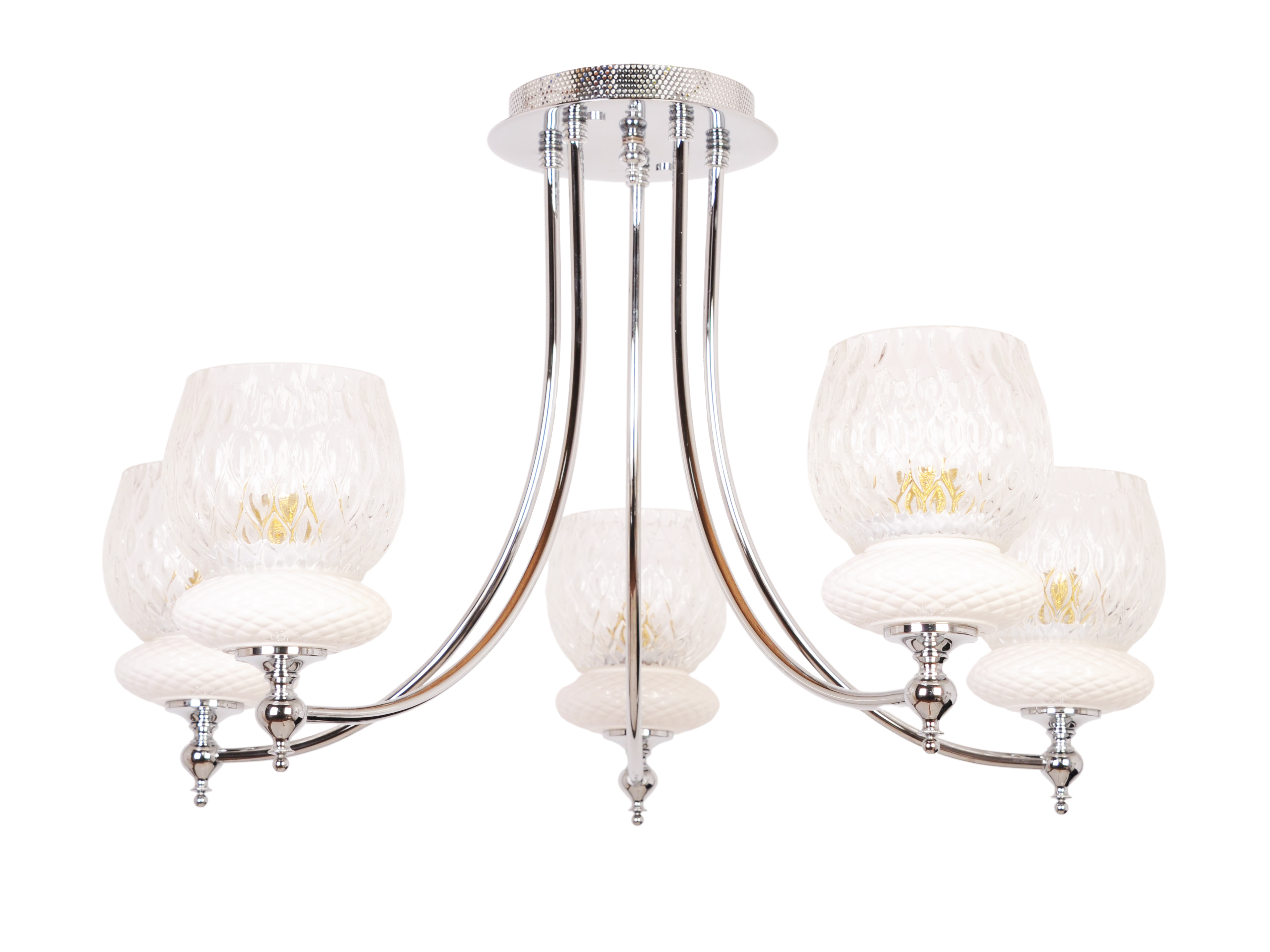 Итальянская люстра, где каждая линия — поэма, а каждый луч — произведение искусства. Рифлёное стекло плафонов, играющее с тенями, и золотистые блики создают атмосферу дворцовых покоев, а хромированные элементы добавляют современный лоск. Торопитесь: из-за ограниченных партий эта модель исчезает из каталогов быстрее, чем закат над Тосканой.