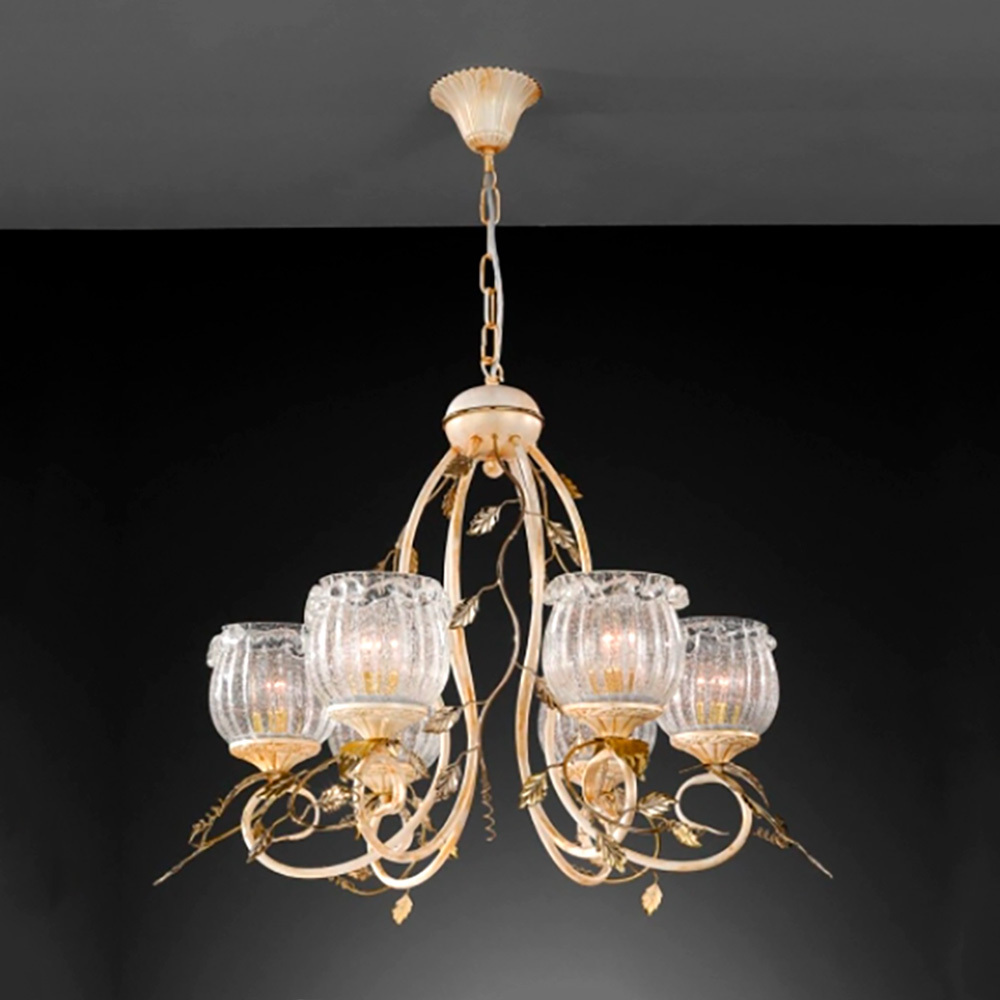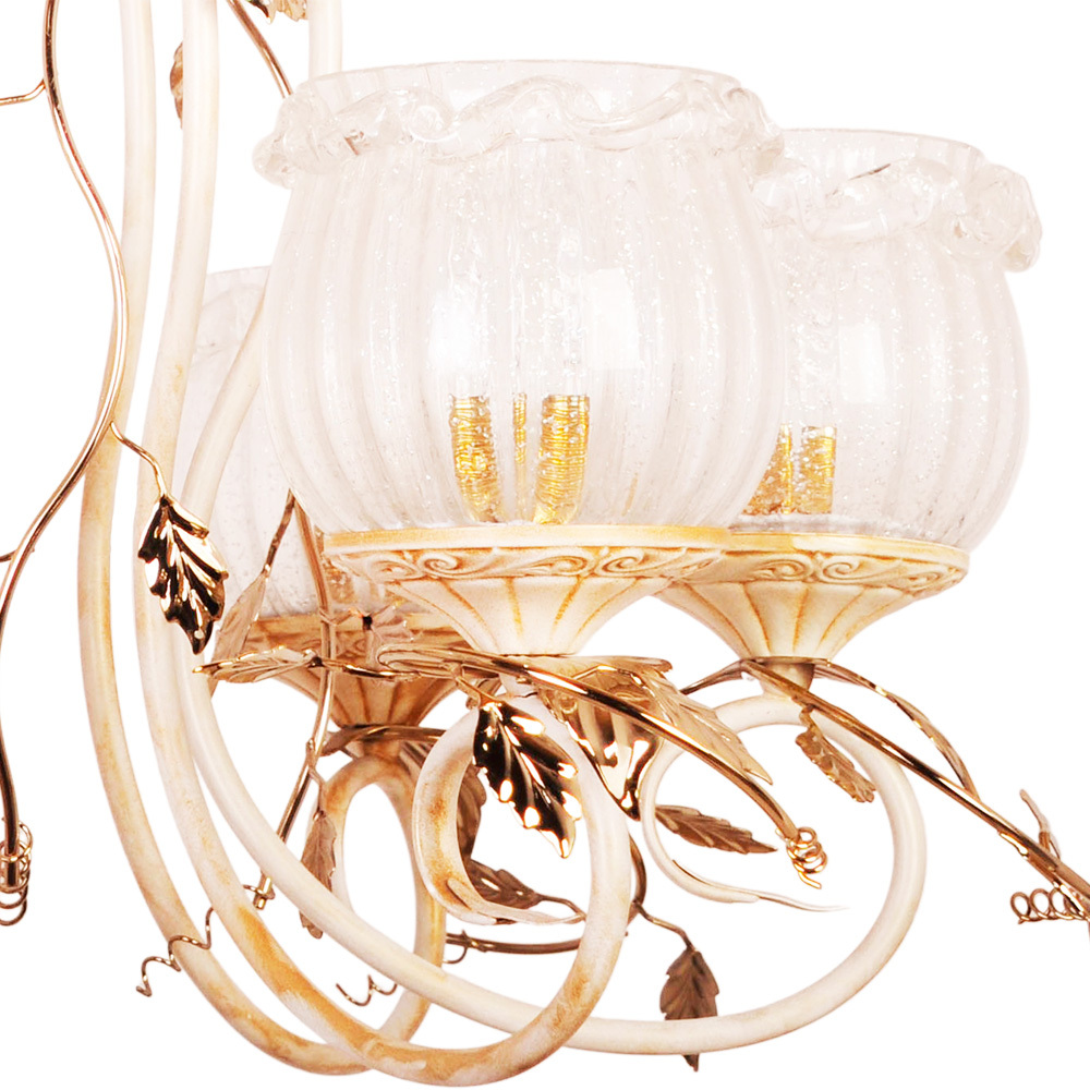 Ее флорентийский цветочный стиль оживает в игре света и теней, превращая обычное освещение в волшебный танец бликов. Каждый плафон — это ручная работа тосканских мастеров: дутое стекло, украшенное золотой и серебряной пылью, и керамический декор, выполненный падованскими умельцами, создают уникальный узор, который невозможно повторить.
