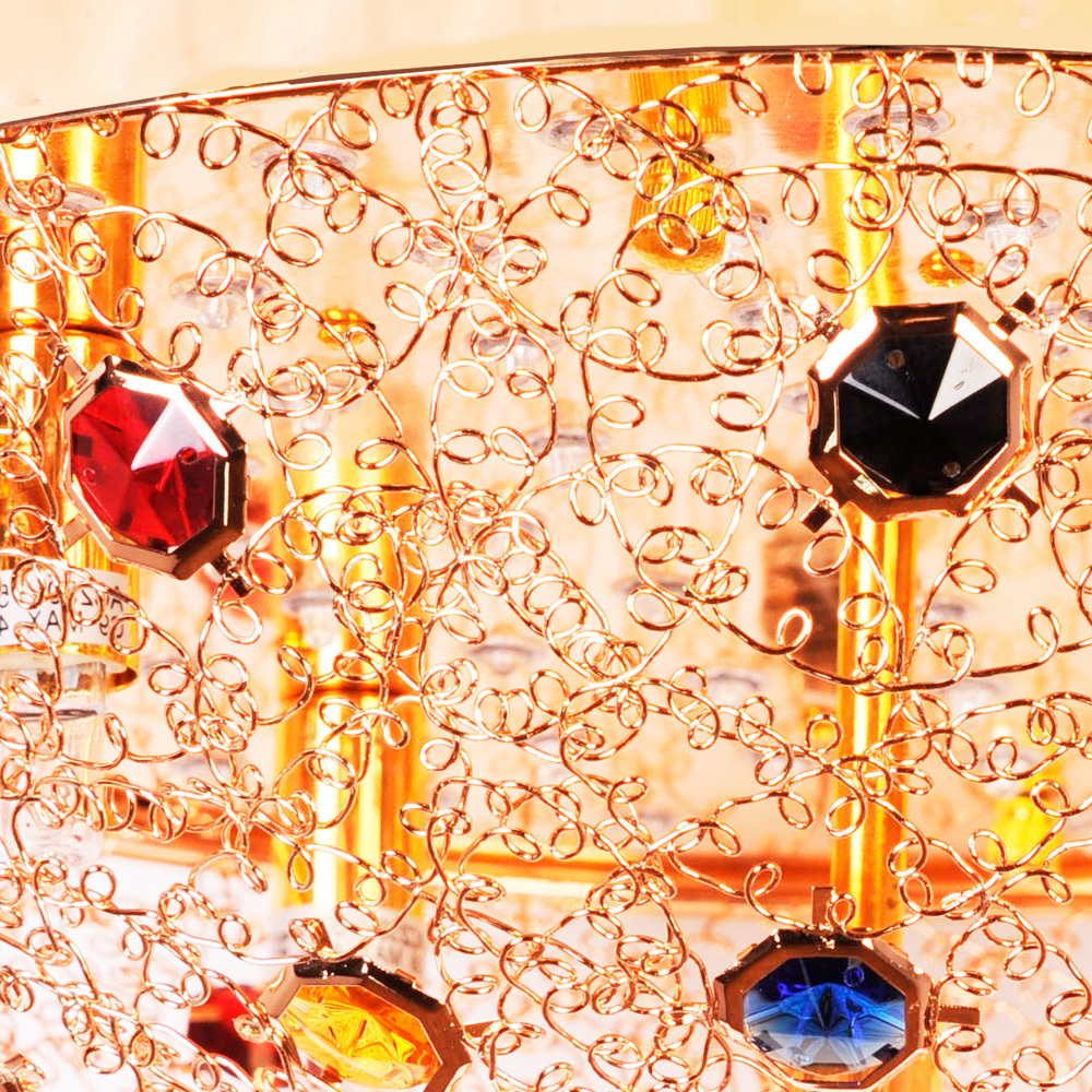 Фокусом притяжения становится центральная композиция из ограненных хрустальных кристаллов. Это не просто декор — это оптический инструмент, создающий сложную игру преломлений. Включая Потолочную люстру Abrasax HYX10179-5GO, вы каждый раз зажигаете в комнате миниатюрный фейерверк из радужных бликов, который меняет восприятие пространства.
